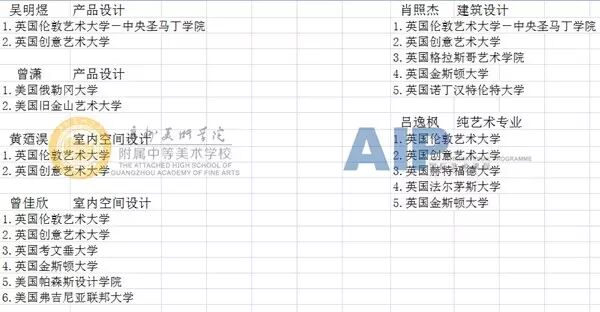 2014-2015预科班学生录取情况 发布时间:2016-03-10 10:41:12 阅读:3315 招生电话:13268398199 以下是2014-2015预科班学生录取情况 上一篇:2015年3月25日毕业班升学公告 下一篇:英国伯明翰城市大学指定我校为广州唯一考点 相关阅读 4月17日第二场新生入学考试现已开放报名! 【入学考试】3月27日广美附中AIP新生入学考试已开放报名! 【结课报告】AIP体育特色课程 致全体同学的一封信 广美附中AIP2018艺术预科新生报到须知 广美附中AIP2018级新生报到须知(三年制国际艺术高中)